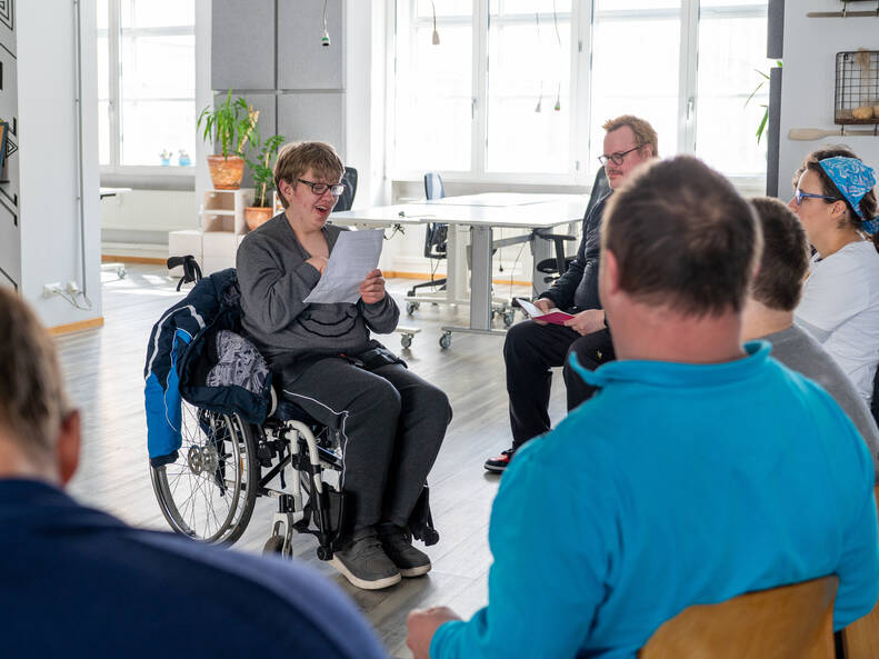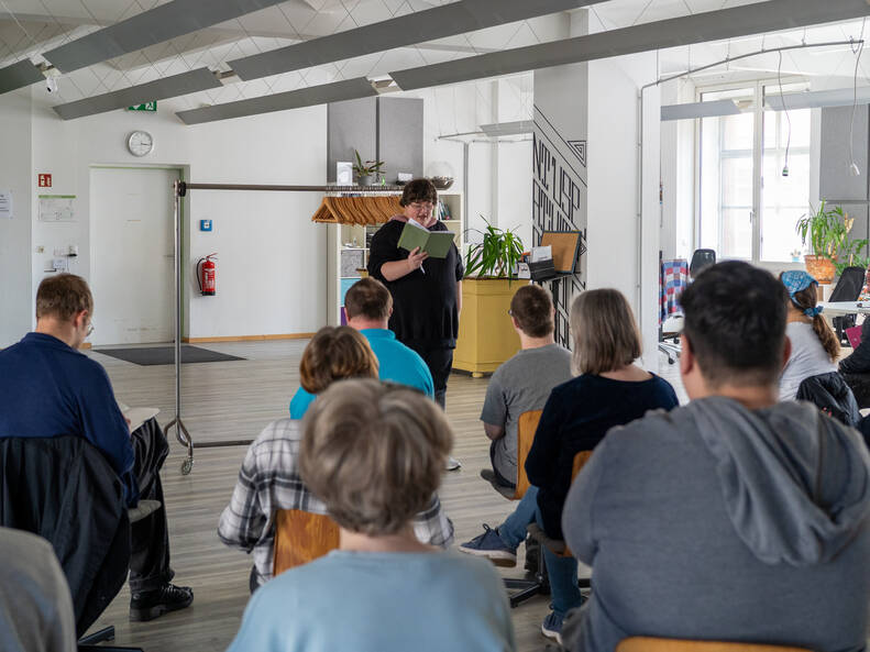 Vielleicht hast du es schon gelesen. Wir haben schon öfter darüber geschrieben: Wir machen Poetry Slam. Das bedeutet: Wir schreiben Texte und wollen damit auftreten. Wir sind eine Gruppe von Menschen mit und ohne Beeinträchtigung, die gerne schreiben.