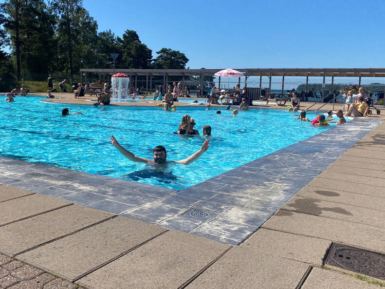 Wir sind aufgestanden und haben gefrühstückt. Dann sind wir gleich in den Pool gegangen und haben gebadet.