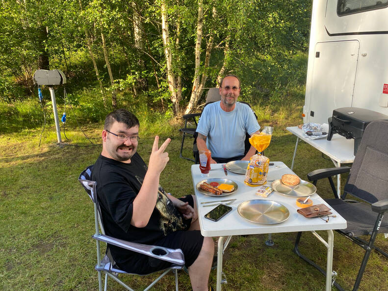 Zum Abendbrot hat es zum Glück aufgehört zu regnen. Wir konnten grillen.