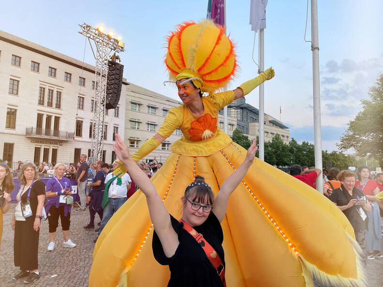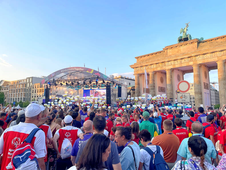 Ich war bei der Abschlussfeier der Special Olympics am Brandenburger Tor. Es war warm und viele Sportler*innen waren da und haben getanzt und gelacht.