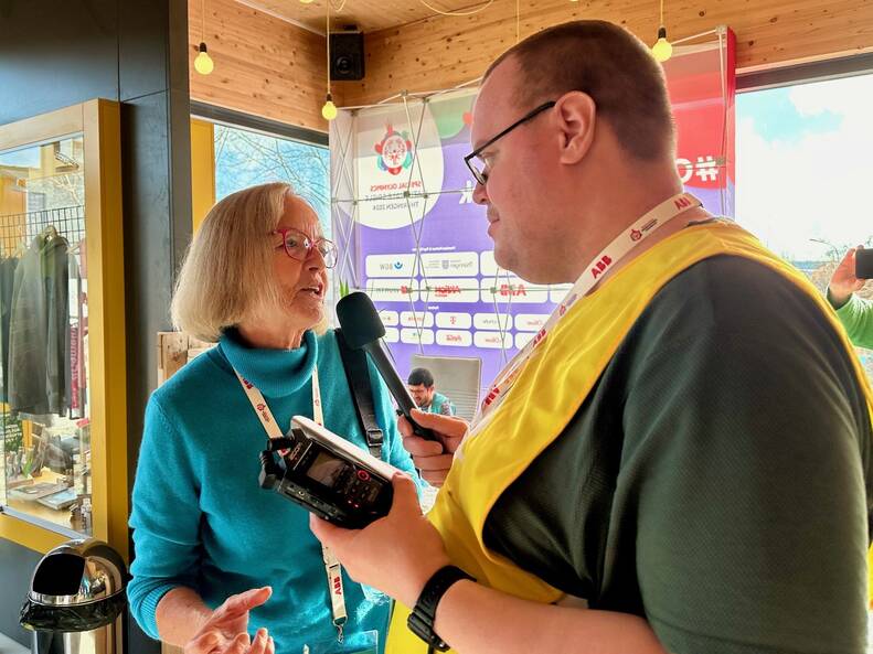 Die Präsidentin von Special Olympics Deutschland war auch bei dem Kletter∙wett∙bewerb. Sie heißt Christiane Krajewski. Sie war sehr begeistert von den Winter∙spielen. Wir konnten sie interviewen.
