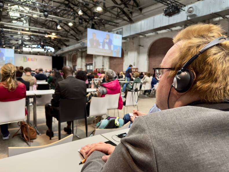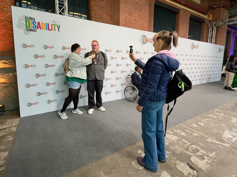 Das war eine riesige Veranstaltung mit 4.000 Teilnehmer*innen aus 100 Ländern. Es war sehr bunt. Menschen mit allen möglichen Beeinträchtigungen waren dort. Sie haben selbstbewusst über ihre Arbeit als Selbstvertreter*innen gesprochen. Mit vielen konnten wir reden. Obwohl das gar nicht so einfach war, denn die meisten haben dort englisch gesprochen. Die Veranstaltung hieß auch Global Disability Summit. Aber bei den Veranstaltungen gab es Übersetzungen ins Deutsche und auch in deutsche einfache Sprache. Das war sehr hilfreich.