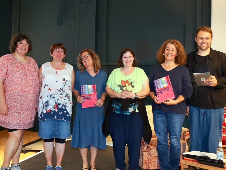 Ich habe zusammen mit Lars Ruppel die Moderation gemacht. Vor dem Lesen haben Lars und ich mit den Autorinnen gesprochen. Wir haben über Einfache Sprache geredet. Sie sagten, dass Einfache Sprache auch im Alltag wichtig ist. Wir haben auch gefragt, wie man am besten anfängt, Geschichten zu schreiben. Die Antwort war: einfach anfangen.